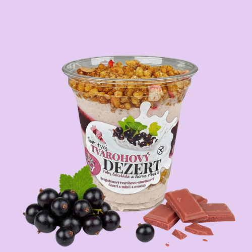 Ručne vyrobený tvarohový krém s unikátnou ruby čokoládou, osviežujúcou čiernou ríbezľou a ovocnou granolou.