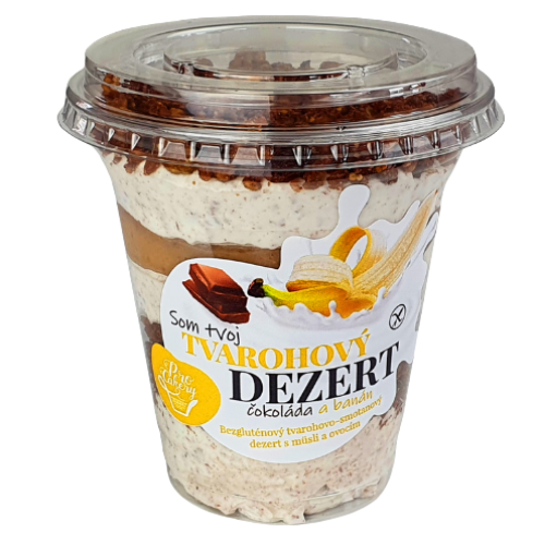 Vychutnajte si nadýchaný krém z čerstvého tvarohu a smotany v nesmrteľnej kombinácii, ktorá spája sladkosť zrelých banánov s hĺbkou kvalitnej horkej čokolády. Vrstva poctivého 100 % banánového pyré sa dokonale dopĺňa s horkou čokoládou s obsahom kakaa 53,1 %. O chrumkavý záver sa postará naša čokoládová granola, ktorá z tohto dezertu robí ideálny sýty snack kedykoľvek počas dňa.